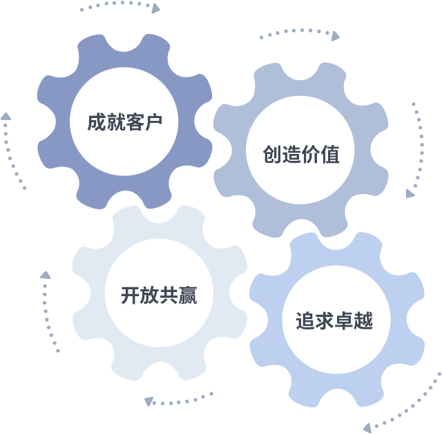 成就客户是一切决策的出发点,创造价值是衡量所有工作的标准,追求卓越是人生就是搏做事做人的态度,开放共赢是人生就是搏的格局也是最终的结果。价值观的齿轮环环相扣,推动着组织里的每个人不断向前。